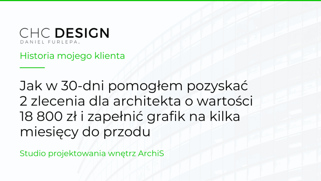 Jak w 30-dni pomogłem pozyskać 2 zlecenia dla architekta o wartości 18 800 zł i zapełnić grafik na kilka miesięcy do przodu