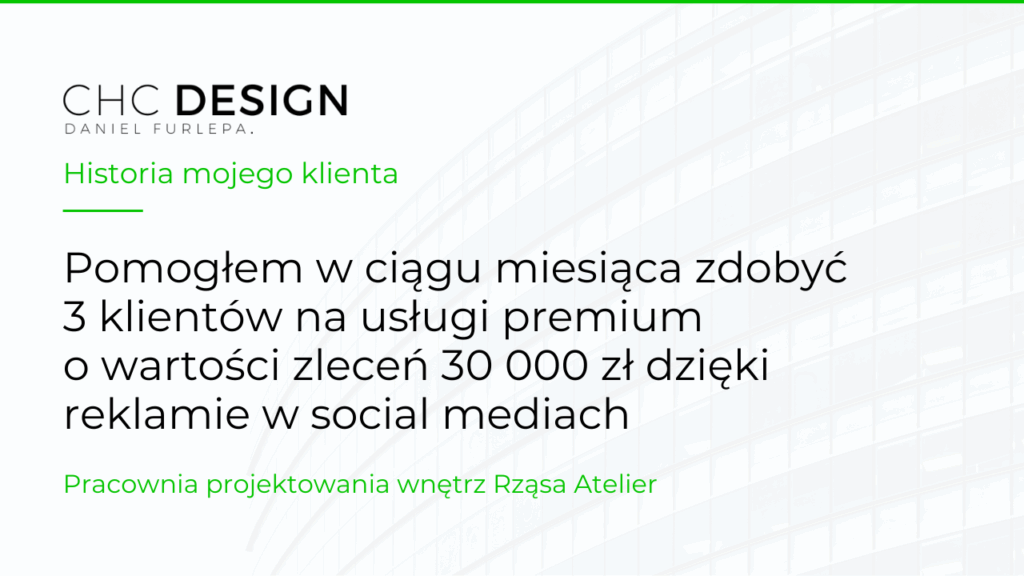 Pomogłem w ciągu miesiąca zdobyć 3 klientów na usługi premium o wartości zleceń 30 000 zł dzięki reklamie w social mediach