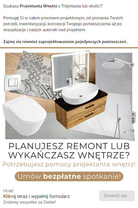 • Stworzyłem dedykowaną kampanię reklamową kierowaną do osób z Trójmiasta i okolic planujących remont lub urządzanie wnętrza.