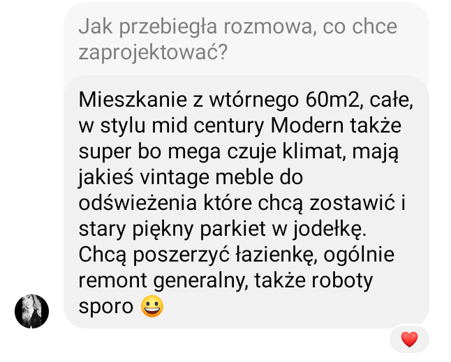 • Zależało jej na klientach z konkretnym budżetem, realną potrzebą remontu i konkretną wizją zbliżoną do tego, co oferuje.
