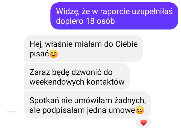- Przeszkoliłem Ewelinę z obsługi kontaktów i prowadzenia rozmów sprzedażowych na podstawie mojego autorskiego schematu.