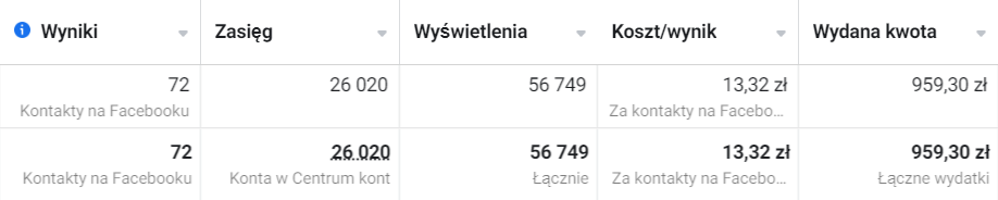 • Koszt pozyskania jakościowego kontaktu to średnio 13,32 zł.